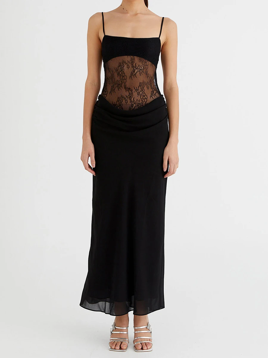 Summer Women’s Long Cami Dress for Party Eveing Club Sleeveless Open Back Lace Patchwork Bodycon Dresses
