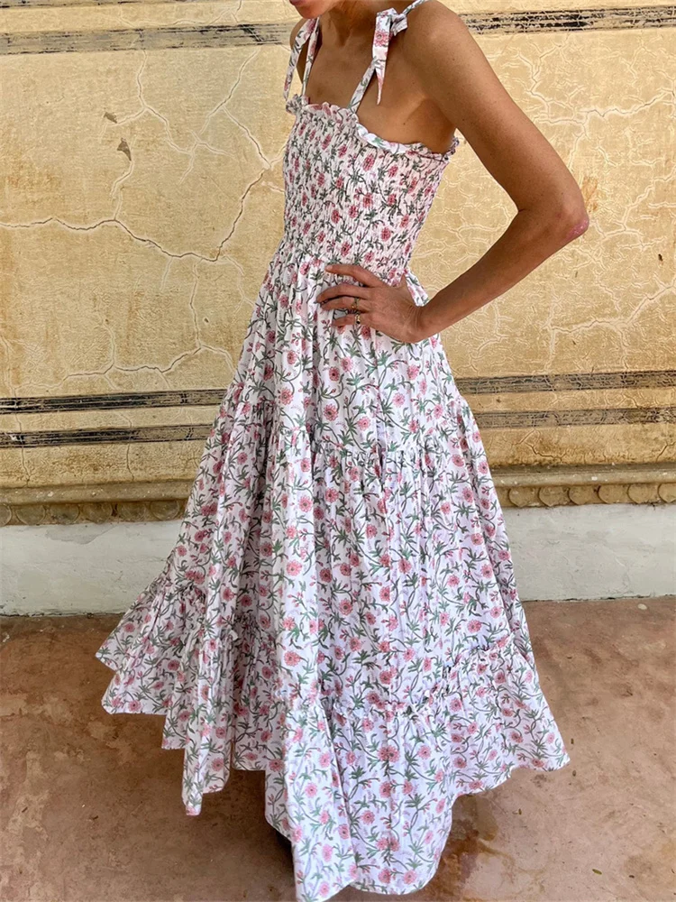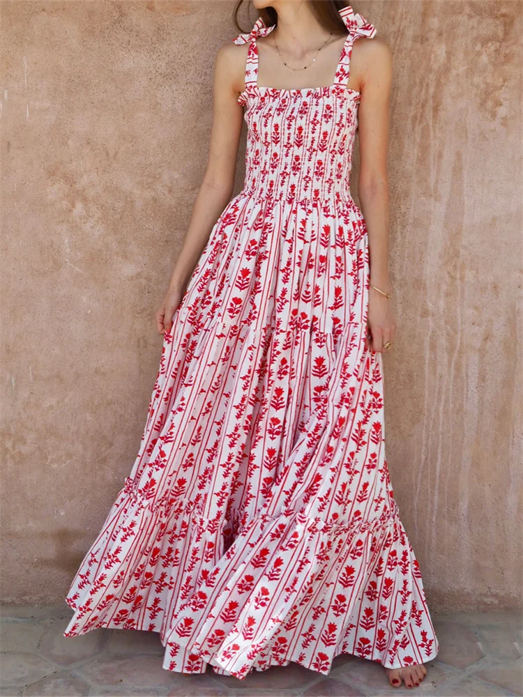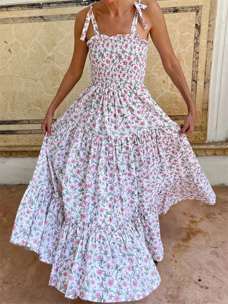 Floral print, bandage straps and sleeveless, smocked, summer dresses for women, beach dresses for women, vacation dresses for women, A-line and ankle length design, make your legs more slender and slim.