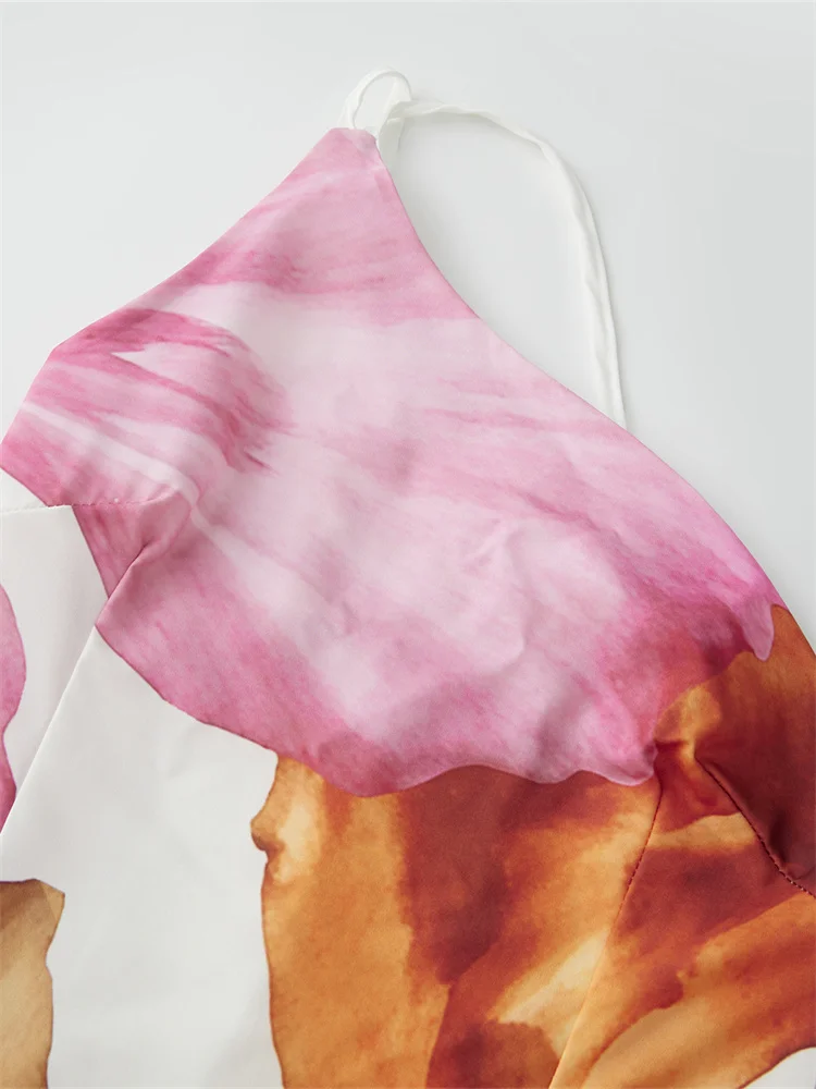 Women’s Summer Long Cami Dress Sleeveless Flower Print One Shoulder Beach Dresses